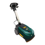 Lavadora de operação a bordo e acionamento a bateria. Esta lavadora de pisos tripulada à bateria oferece uma faixa de limpeza mais ampla e um tanque de recuperação/solução de tamanho generoso. O design fácil de usar oferece controles Touch-n-Go para fácil operação.